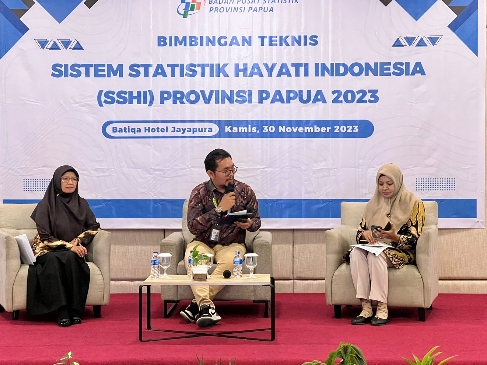 Menindaklanjuti uji coba SSHI dan untuk mewujudkan tercapainya satu data kependudukan di Provinsi Papua, maka BPS Provinsi Papua melaksanakan kegiatan Bimbingan Teknis (Bimtek) SSHI pada Hari Kamis Tanggal 30 November 2023 bertempat di Hotel Batiqa Hotel, Entrop, Kota Jayapura.