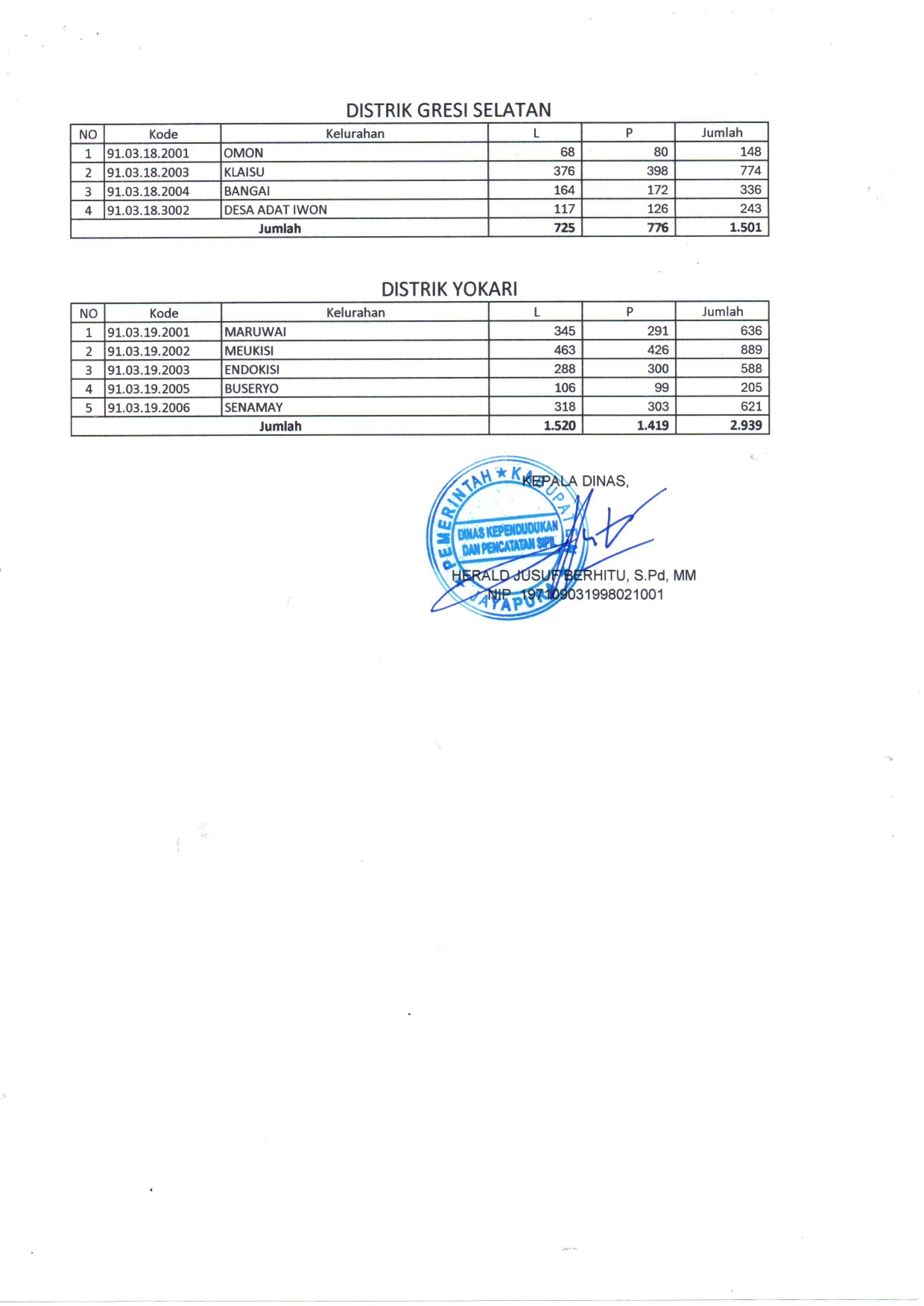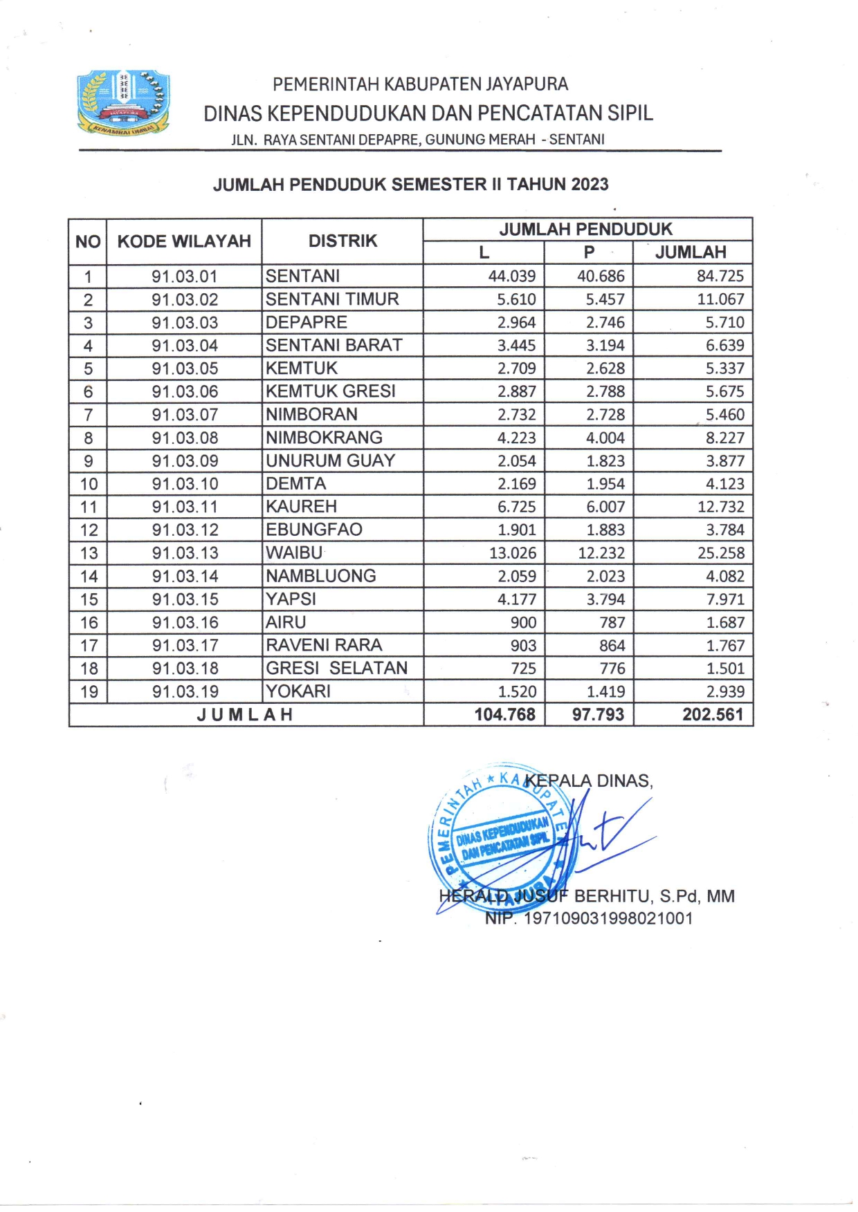 Kepala Dinas Kependudukan Dan Pencatatan Sipil Kabupaten Jayapura